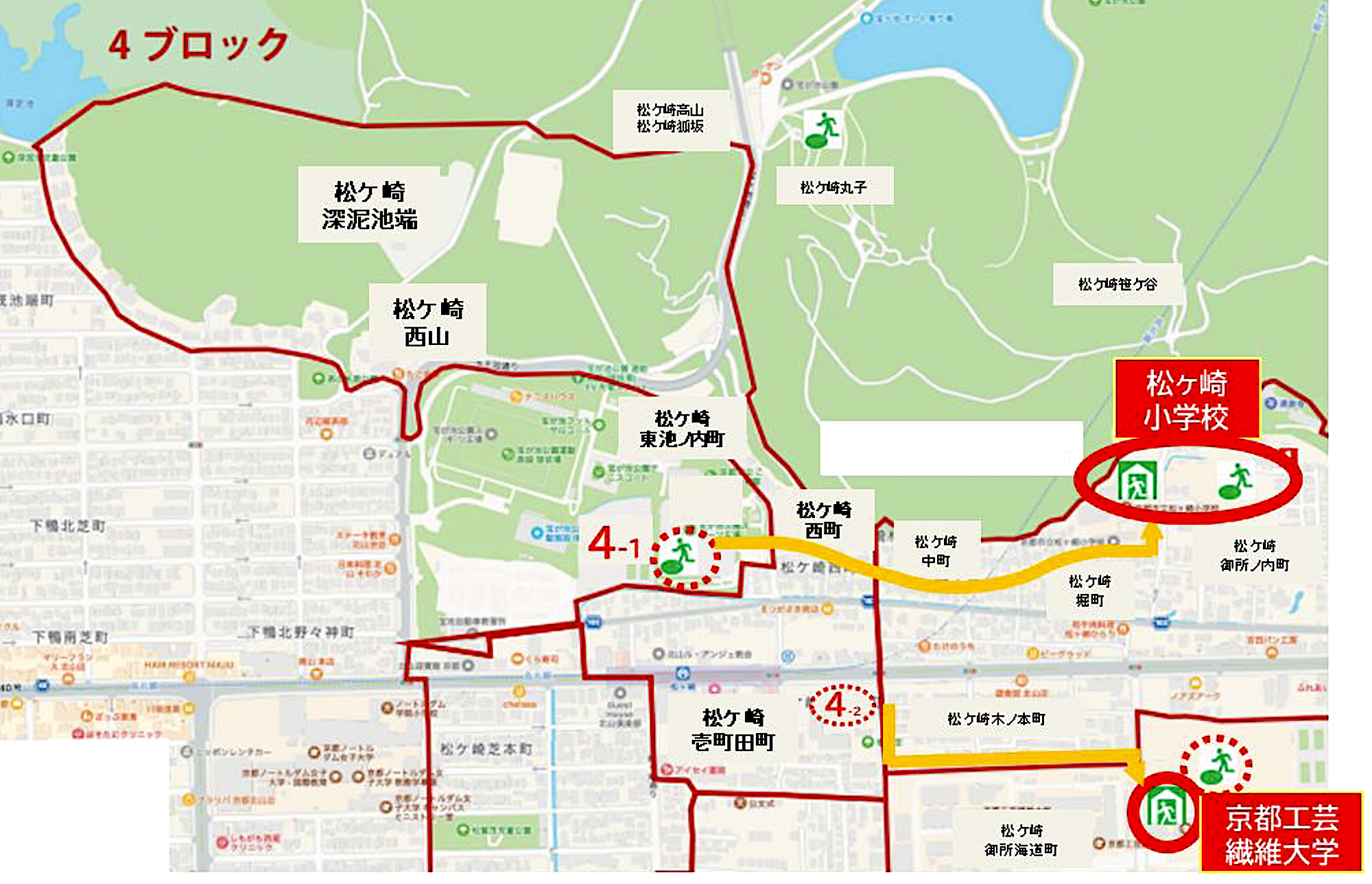 ■■ 松ヶ崎西町北・西町南・西山・グランブルー・グランシティオの避難場所は、2つあります。<自主防災会・第4ブロックに所属しています>