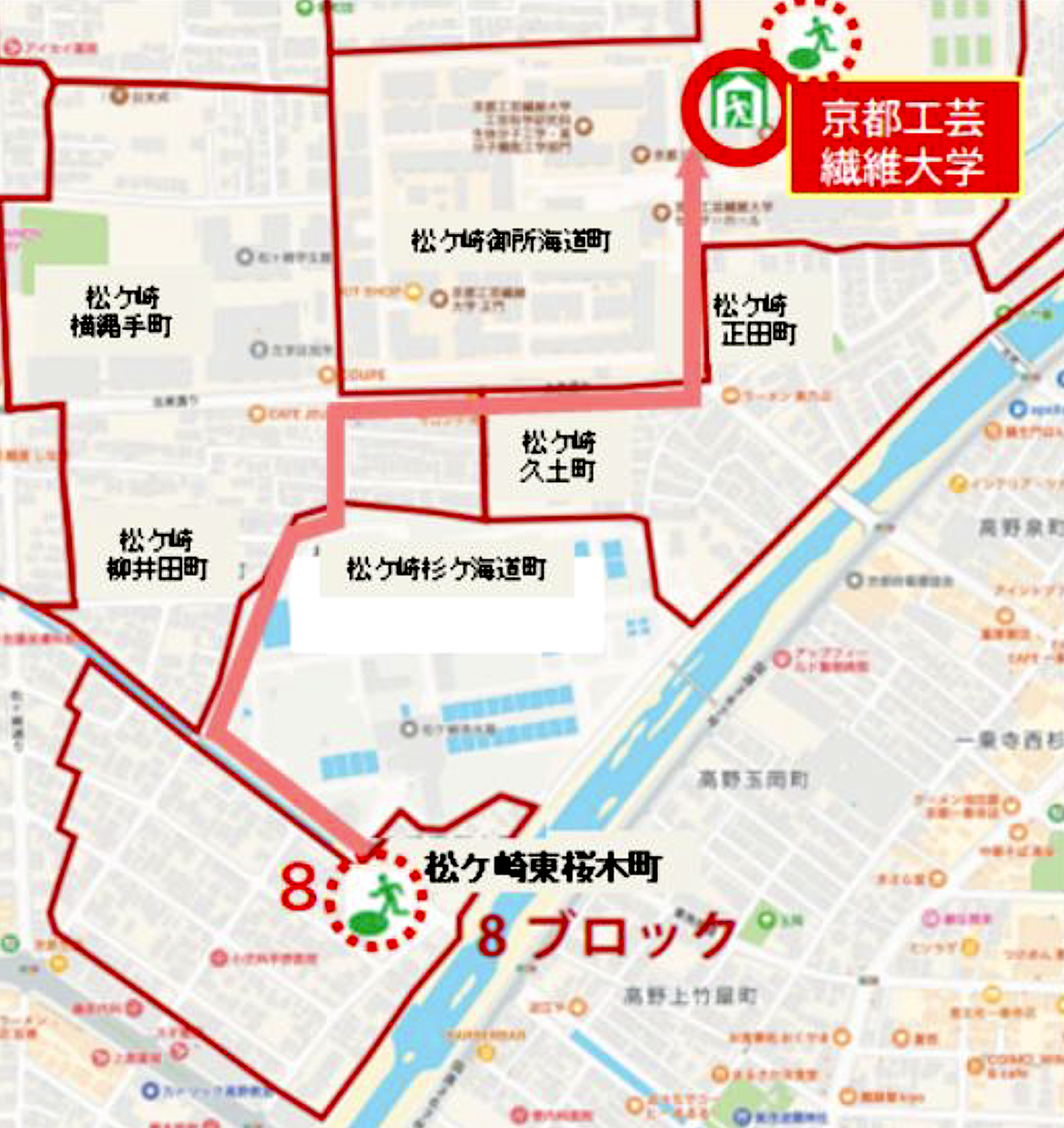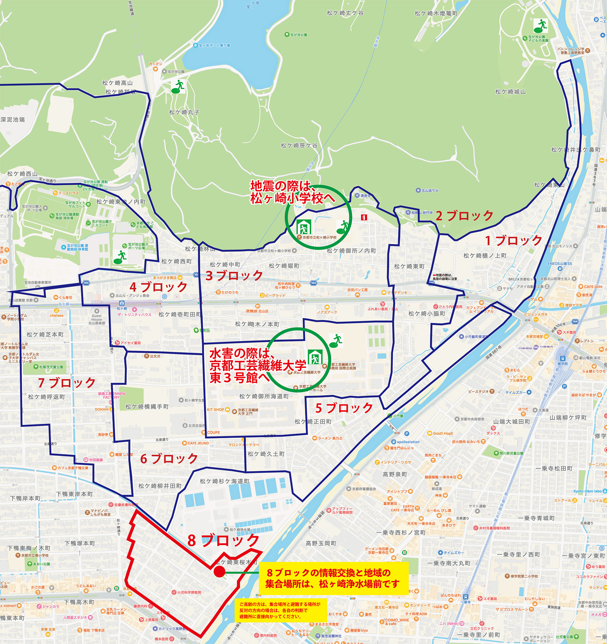 ■■ 第8ブロックの注意点:水害時に高野川の近くを通って避難することは、十分注意してください。